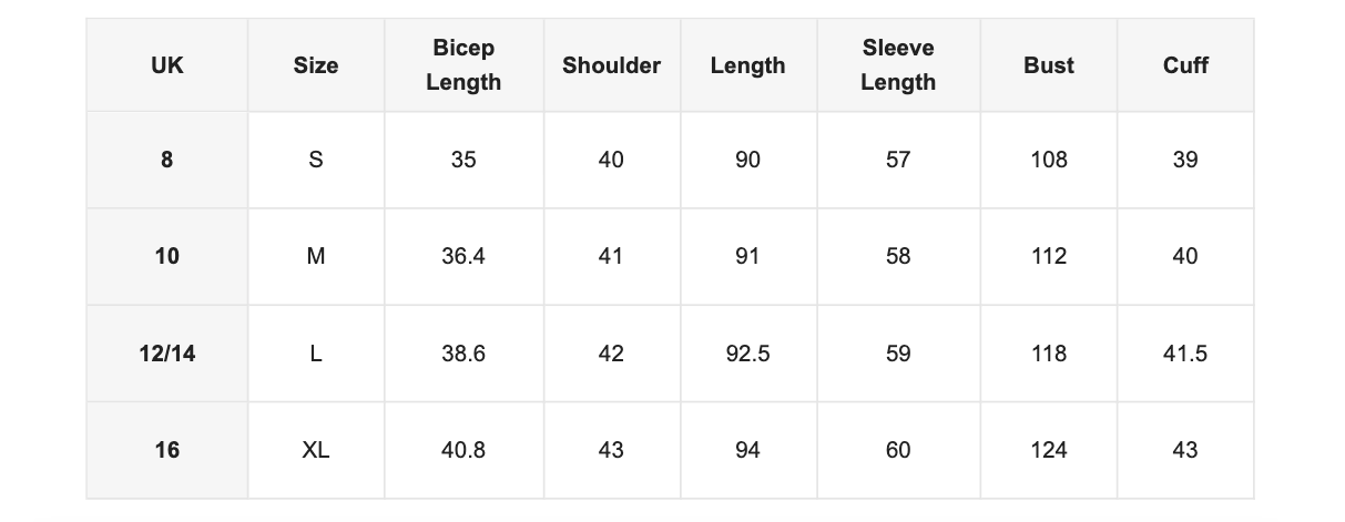 Size Guide (cm)